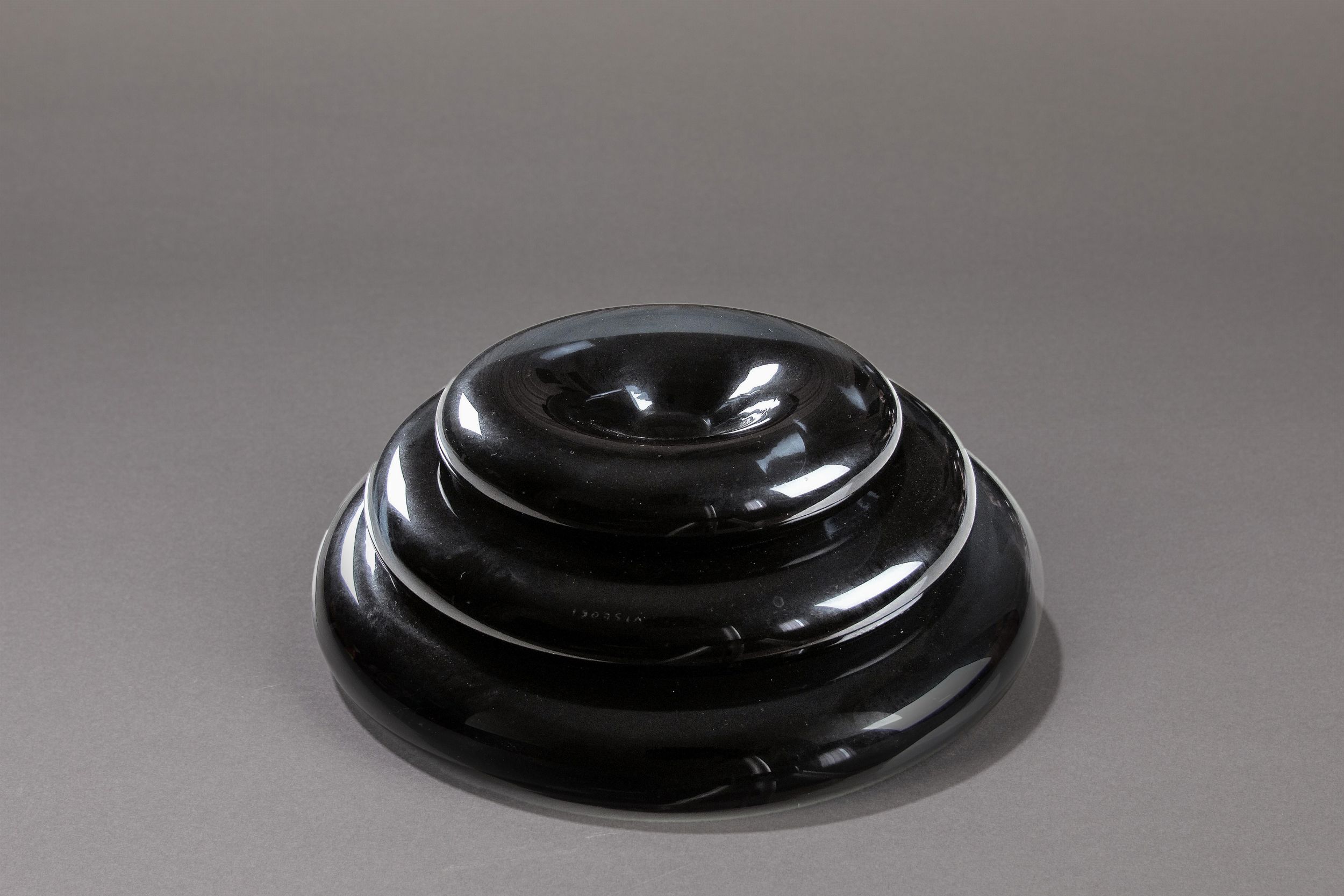 1970 ca. serie di tre posaceneri impilabili in vetro soffiato. Produzione Vistosi. Firma incisa.