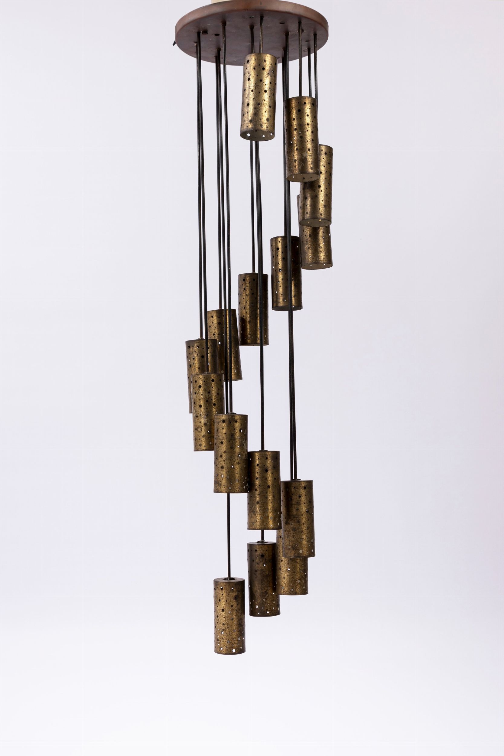 1970 ca. stile brutalist a 15 luci in metallo.