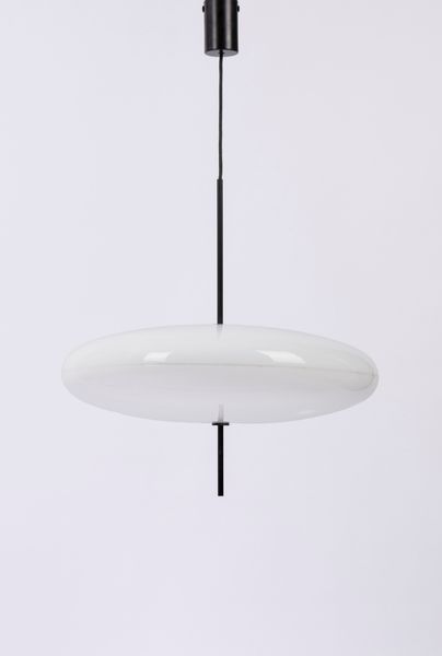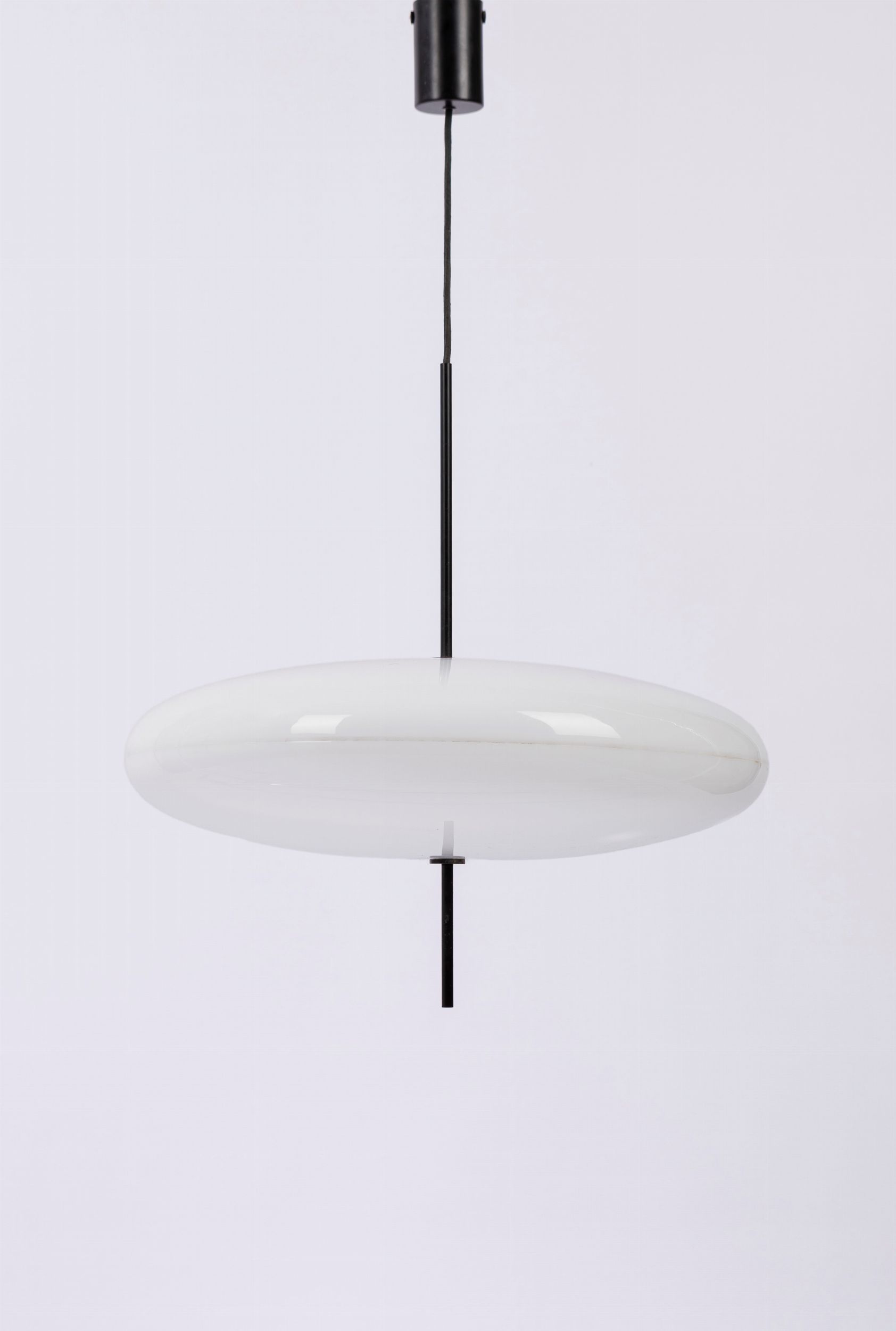 1950 ca. modello 2065 GF in metacrilato opalino e ottone laccato nero. Produzione Arteluce.