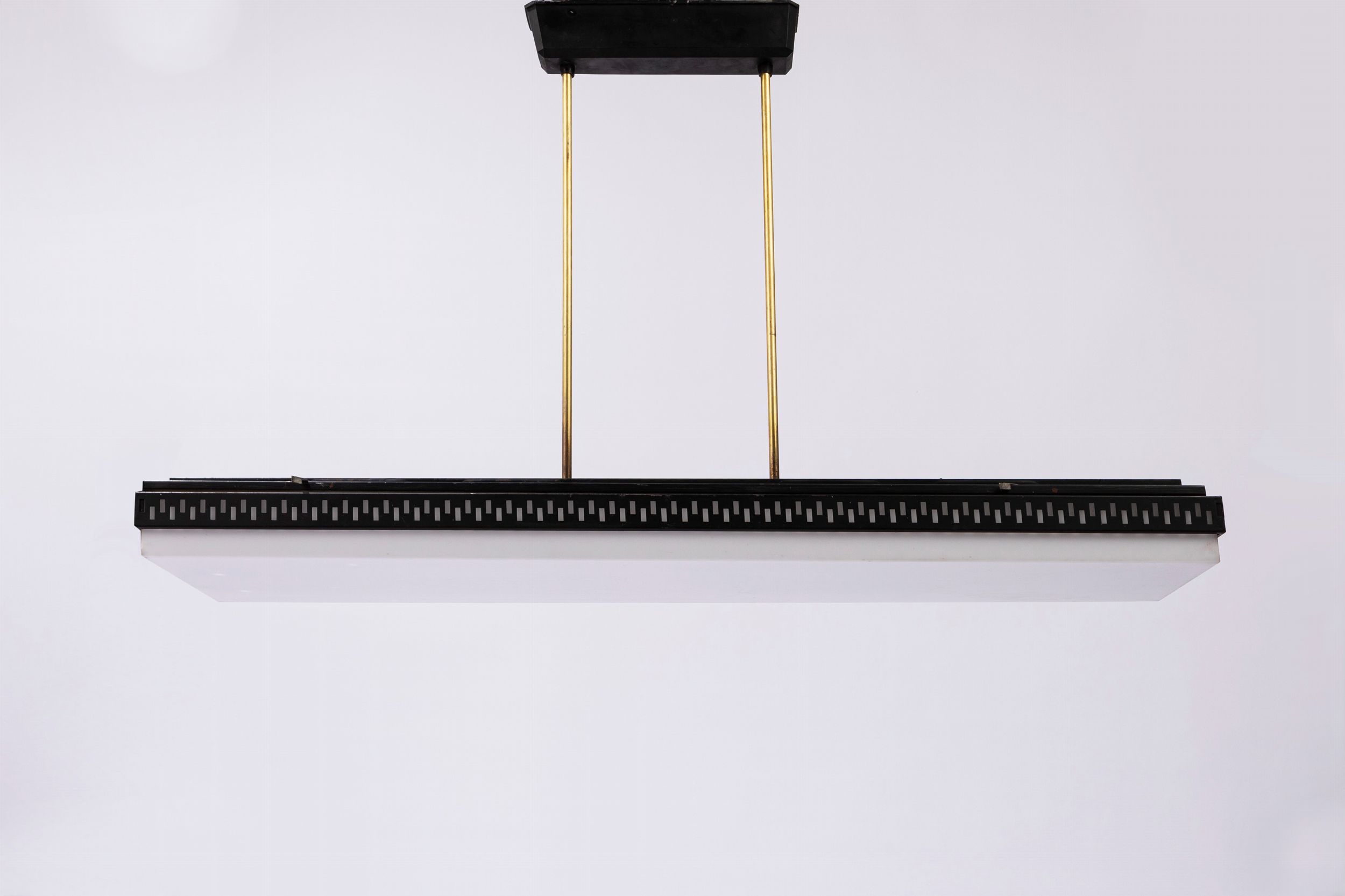 1960 ca. Lamiera verniciata, ottone, perspex, illuminazione a fluorescenza.