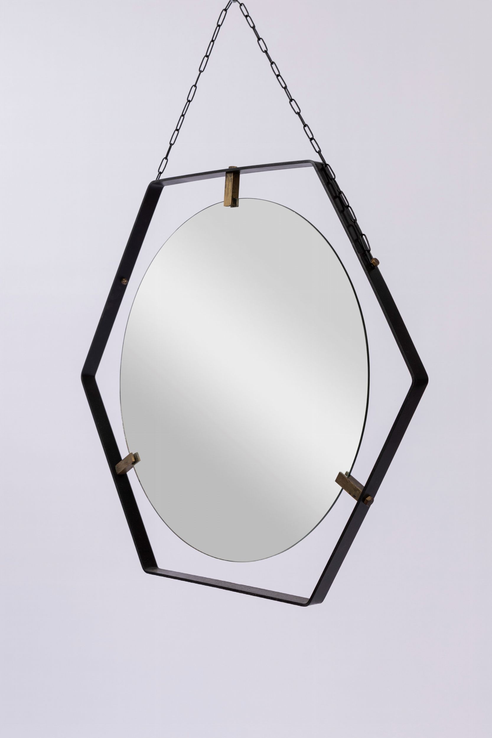 1960 ca. Ottone, metallo verniciato, vetro specchiato.