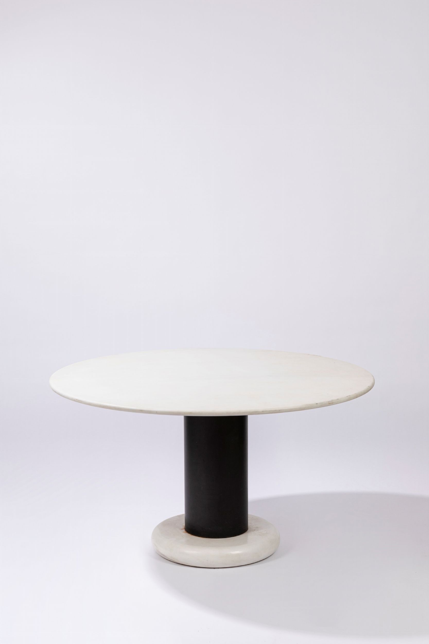 1971 tavolo in marmo bianco di Carrara e acciaio verniciato.