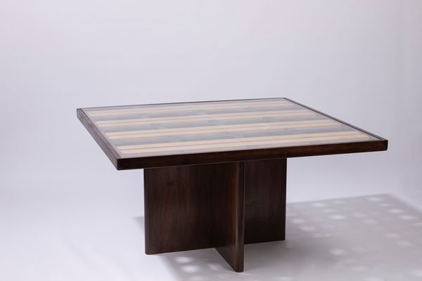 1960 ca. in legno con struttura a listelli chiari e scuri a motivo optical.