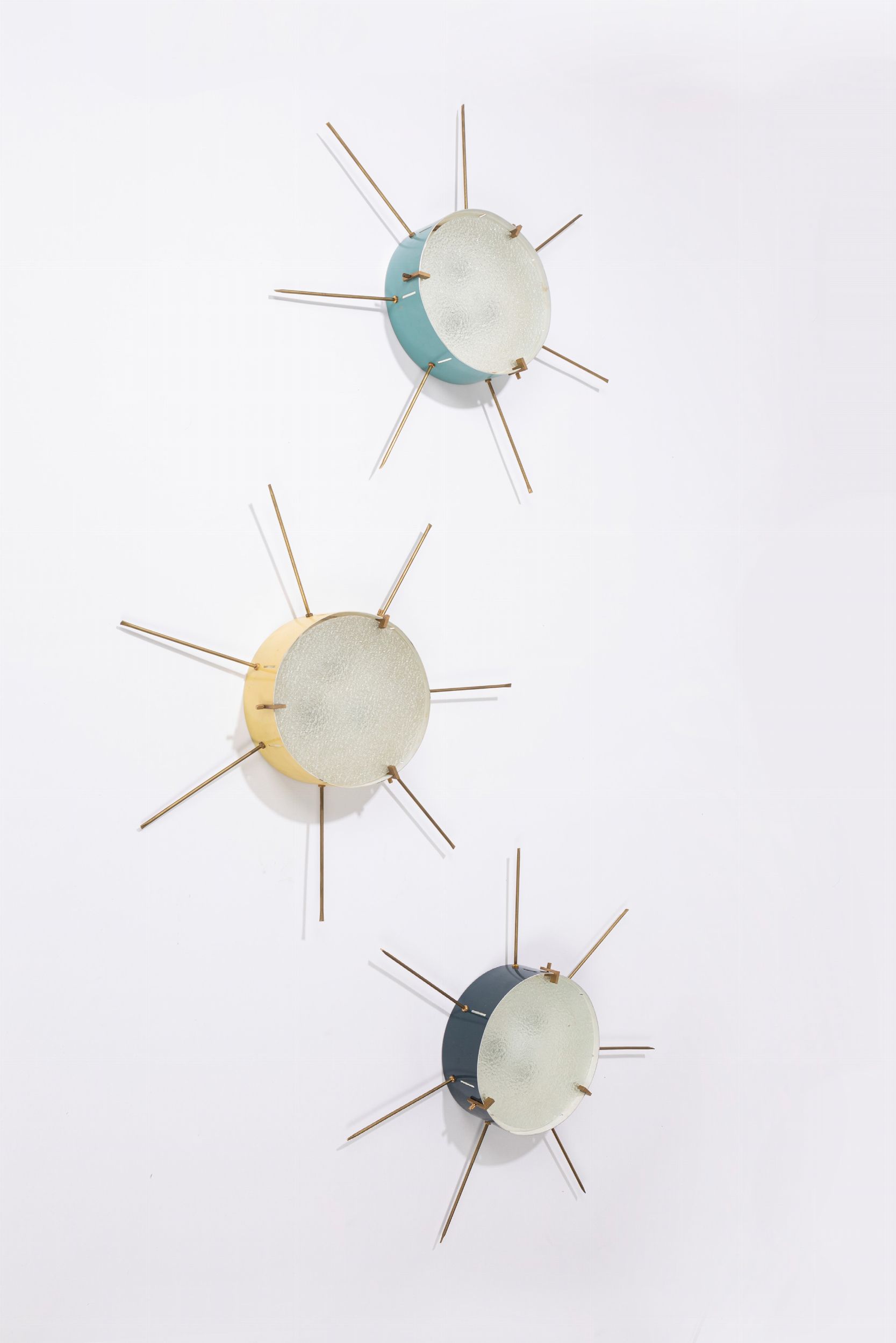 1955 (o a plafone) in metallo laccato, vetro stampato e ottone.