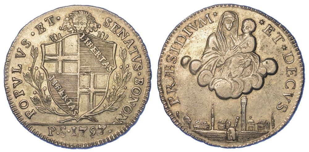BOLOGNA. GOVERNO POPOLARE, 1796-1797. Mezzo scudo da 5 Paoli 1797 (I tipo).