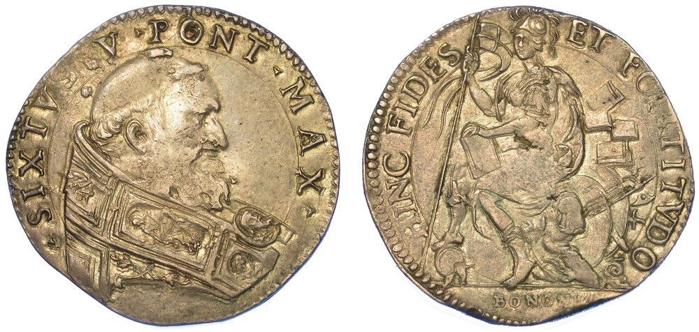 BOLOGNA. SISTO V, 1585 -1590. Piastra da 3 sisti o Testone.