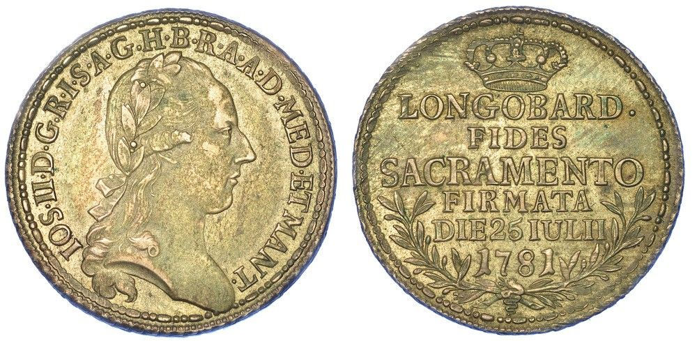 MILANO. GIUSEPPE II D'ASBURGO-LORENA, 1780-1790. Lira del giuramento 1781.