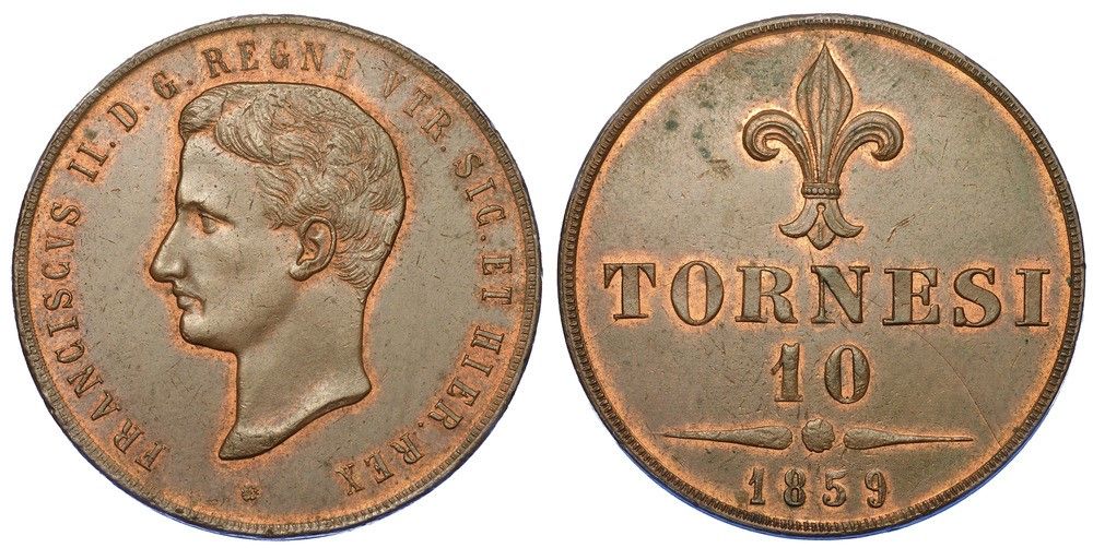 NAPOLI. FRANCESCO II DI BORBONE, 1859-1860. 10 Tornesi 1859.