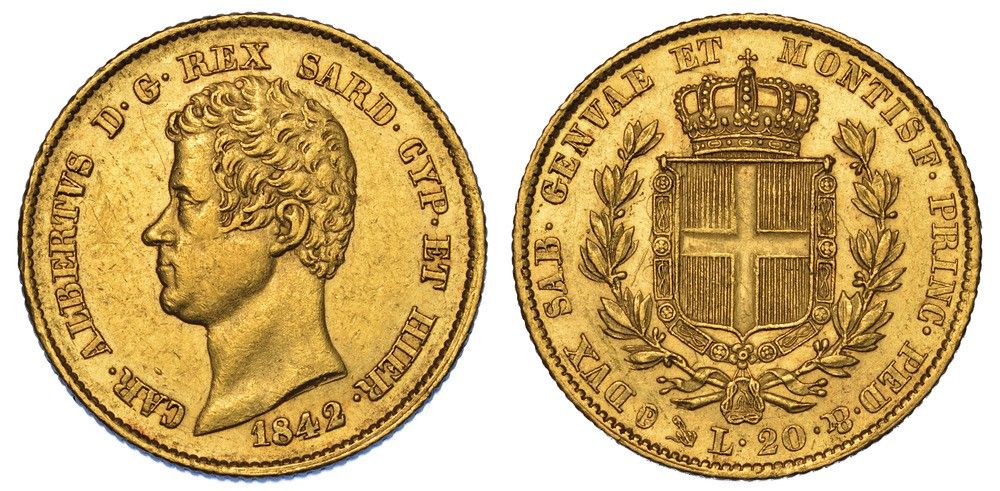 REGNO DI SARDEGNA. CARLO ALBERTO DI SAVOIA, 1831-1849. 20 Lire 1842. Genova.