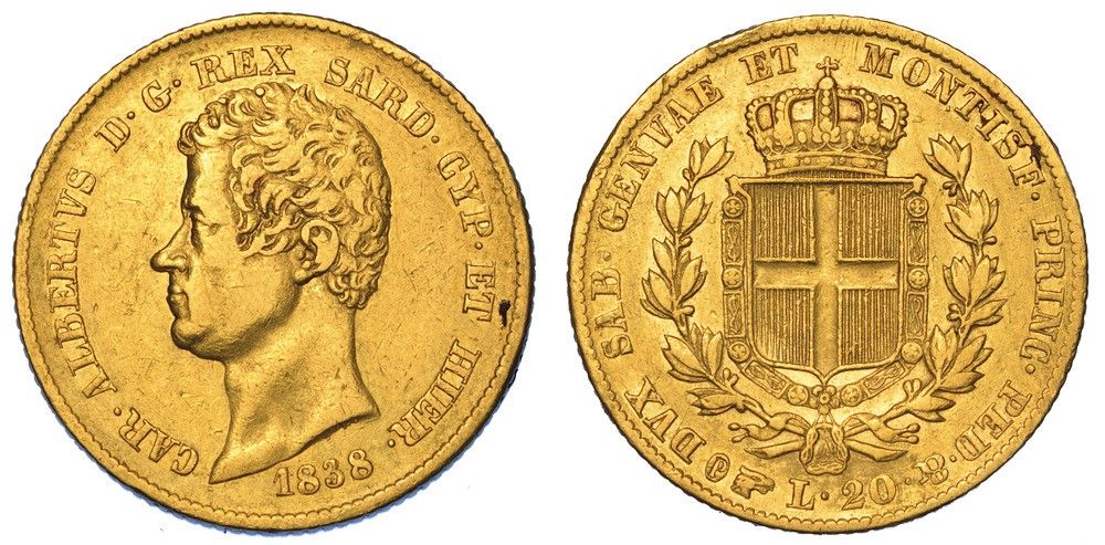 REGNO DI SARDEGNA. CARLO ALBERTO DI SAVOIA, 1831-1849. 20 Lire 1838. Torino.