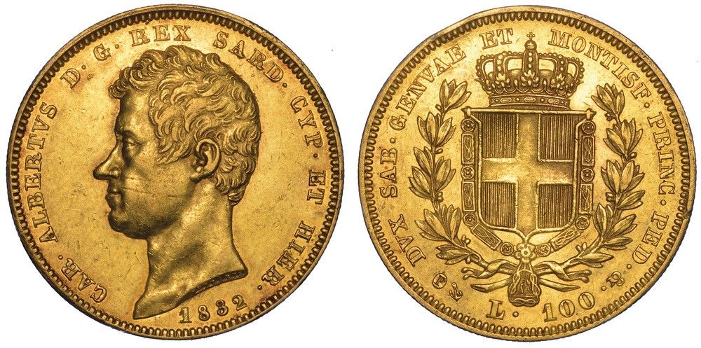REGNO DI SARDEGNA. CARLO ALBERTO DI SAVOIA, 1831-1849. 100 Lire 1832. Genova.