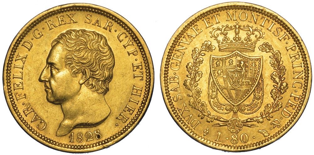 REGNO DI SARDEGNA. CARLO FELICE DI SAVOIA, 1821-1831. 80 Lire 1828. Torino.
