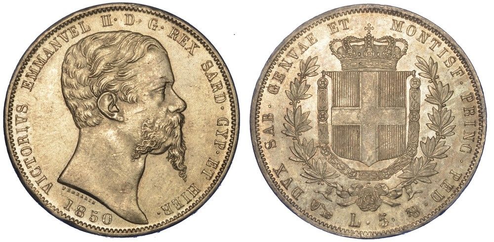 REGNO DI SARDEGNA. VITTORIO EMANUELE II DI SAVOIA, 1849-1861. 5 Lire 1850. Genov [..]