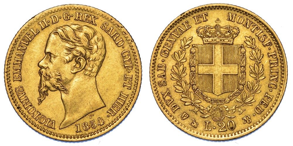 REGNO DI SARDEGNA. VITTORIO EMANUELE II DI SAVOIA, 1849-1861. 20 Lire 1854. Geno [..]