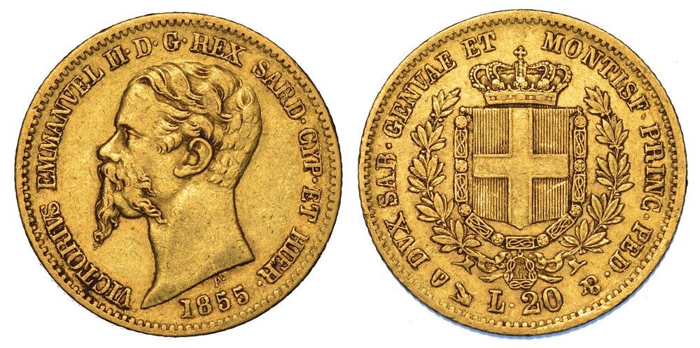 REGNO DI SARDEGNA. VITTORIO EMANUELE II DI SAVOIA, 1849-1861. 20 Lire 1855. Geno [..]
