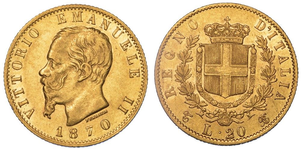 REGNO D'ITALIA. VITTORIO EMANUELE II DI SAVOIA, 1861-1878. 20 Lire 1870. Torino.