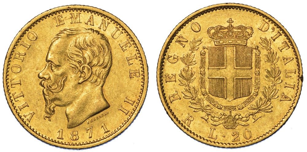 REGNO D'ITALIA. VITTORIO EMANUELE II DI SAVOIA, 1861-1878. 20 Lire 1871. Roma.