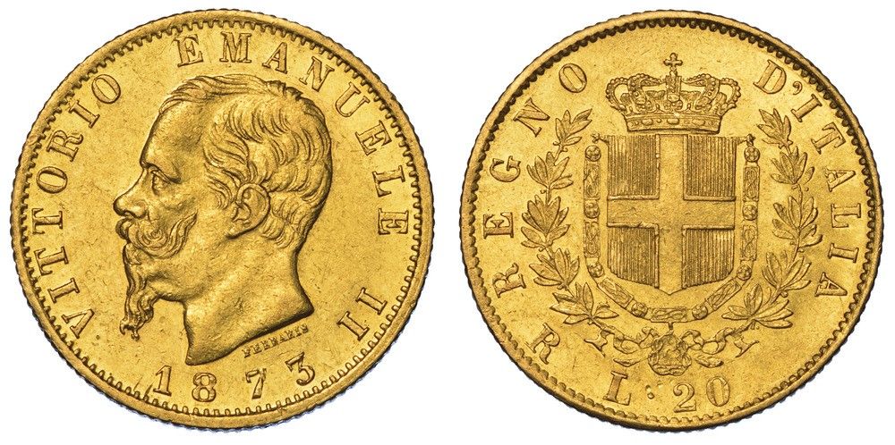 REGNO D'ITALIA. VITTORIO EMANUELE II DI SAVOIA, 1861-1878. 20 Lire 1873. Roma.