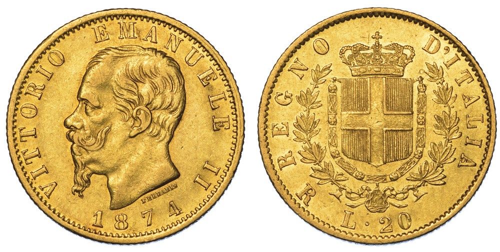 REGNO D'ITALIA. VITTORIO EMANUELE II DI SAVOIA, 1861-1878. 20 Lire 1874. Roma.