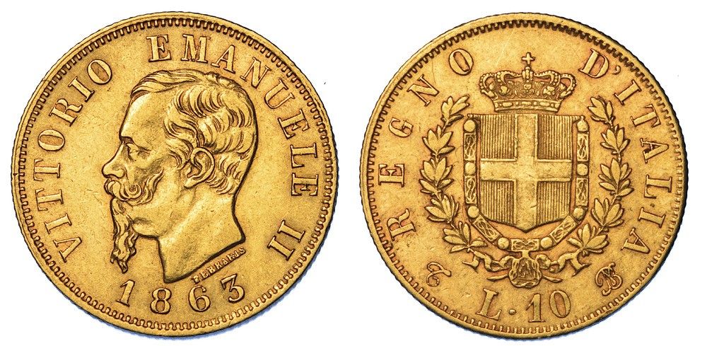 REGNO D'ITALIA. VITTORIO EMANUELE II DI SAVOIA, 1861-1878. 10 Lire 1863. Torino.