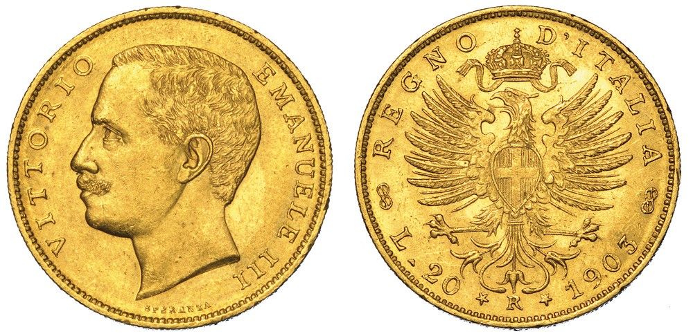 REGNO D'ITALIA. VITTORIO EMANUELE III DI SAVOIA, 1900-1946. 20 Lire 1903. Aquila [..]