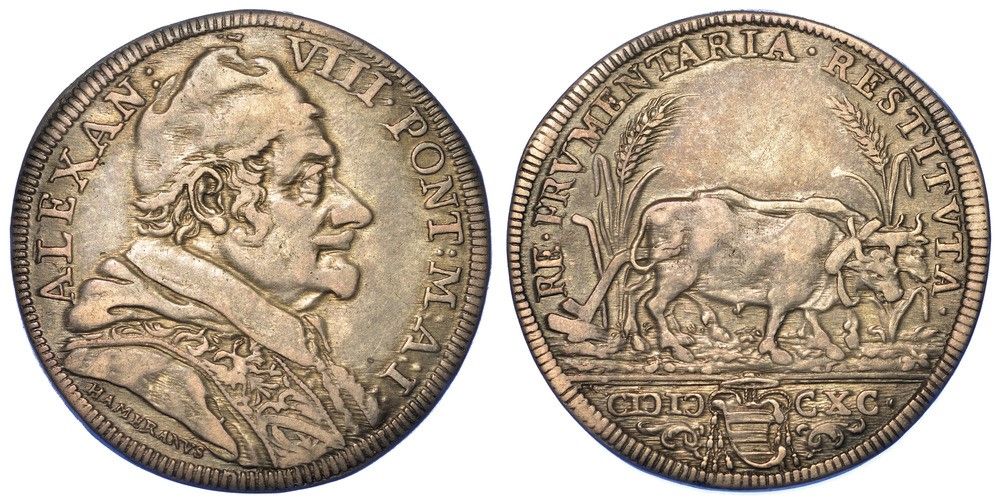 ROMA. ALESSANDRO VIII, 1689-1691. Testone 1690/A. I.