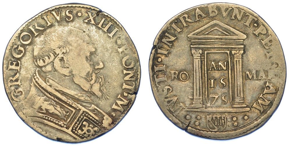 ROMA. GREGORIO XIII, 1572-1585. Testone 1575. Anno Santo.