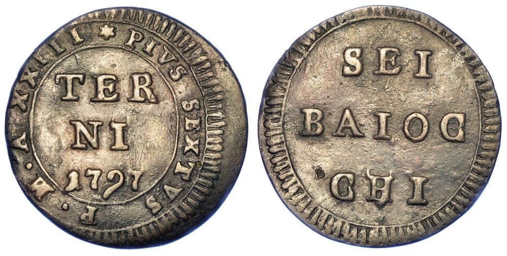 TERNI. PIO VI, 1775-1799. Muraiola da sei baiocchi 1797.