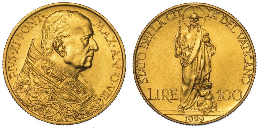 VATICANO. PIO XI, 1922-1939. 100 Lire 1929/A. VIII.