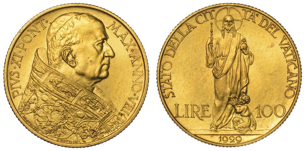 VATICANO. PIO XI, 1922-1939. 100 Lire 1929/A. VIII.