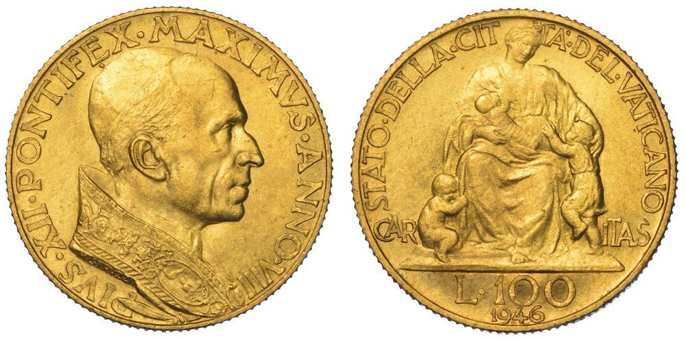 VATICANO. PIO XII, 1939-1958. 100 Lire 1946/A. VIII.