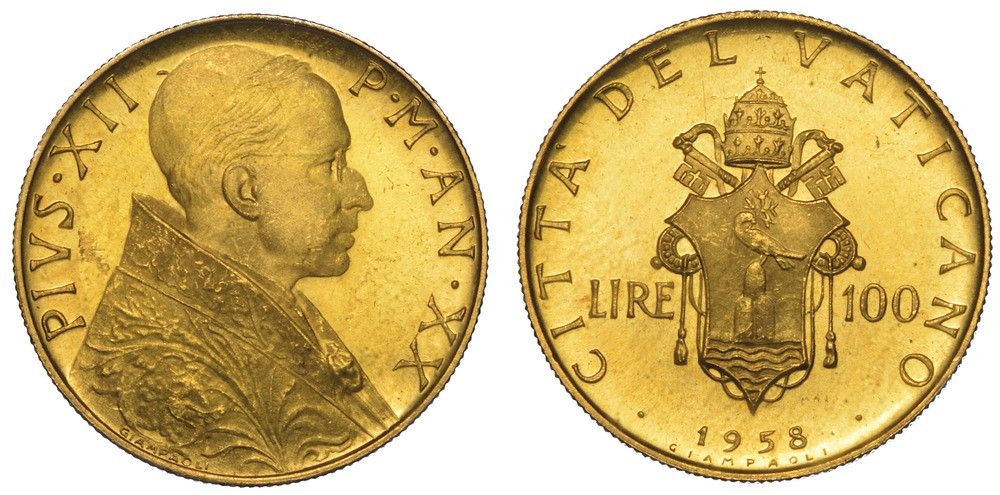 VATICANO. PIO XII, 1939-1958. 100 Lire 1958/A. XX