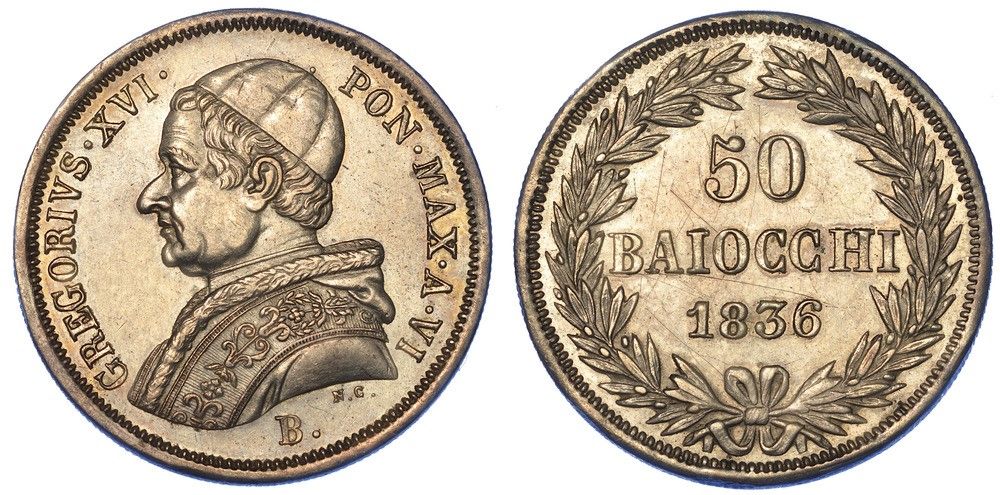 BOLOGNA. GREGORIO XVI, 1831-1846. 50 Baiocchi 1836/A. VI.