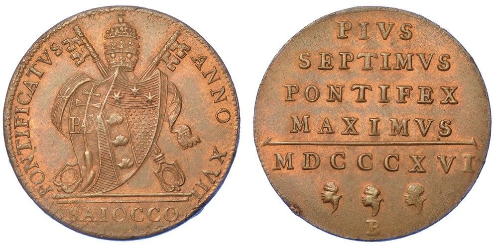 BOLOGNA. PIO VII, 1800-1823. Baiocco 1816/A. XVII.