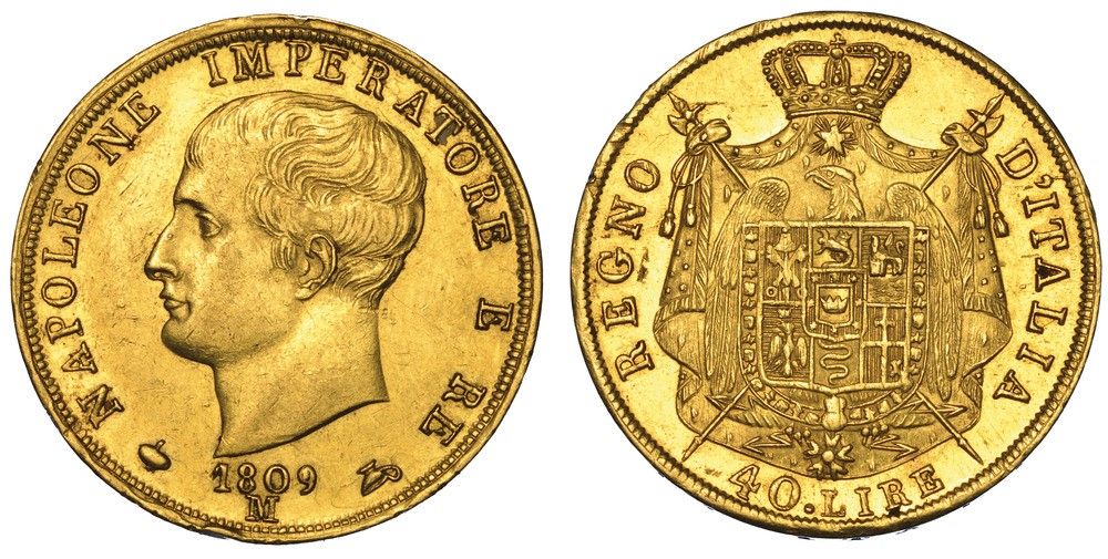 MILANO. NAPOLEONE I, 1805-1814. 40 Lire 1809 (II tipo, puntali aguzzi).