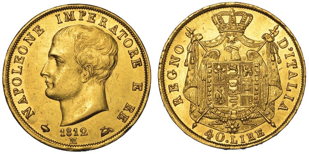 MILANO. NAPOLEONE I, 1805-1814. 40 Lire 1812 (II tipo, puntali sagomati).