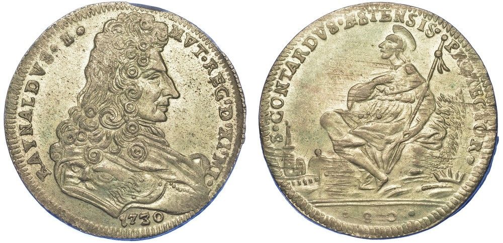 MODENA. RINALDO D'ESTE, 1694-1737. Mezzo Ducato 1730.