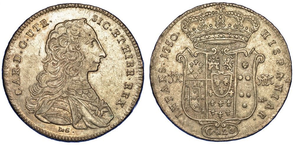 NAPOLI. CARLO DI BORBONE, 1734-1759. Piastra da 120 Grana 1750.