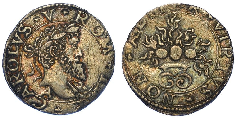 NAPOLI. CARLO V D'ASBURGO, 1516-1556. Mezzo carlino.