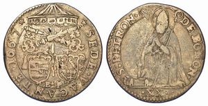 Stemma sormontato da triregno e chiavi decussate. R/ Leone vessillifero rampante a s.; all'esergo 26. MIR 1353/1. [..]