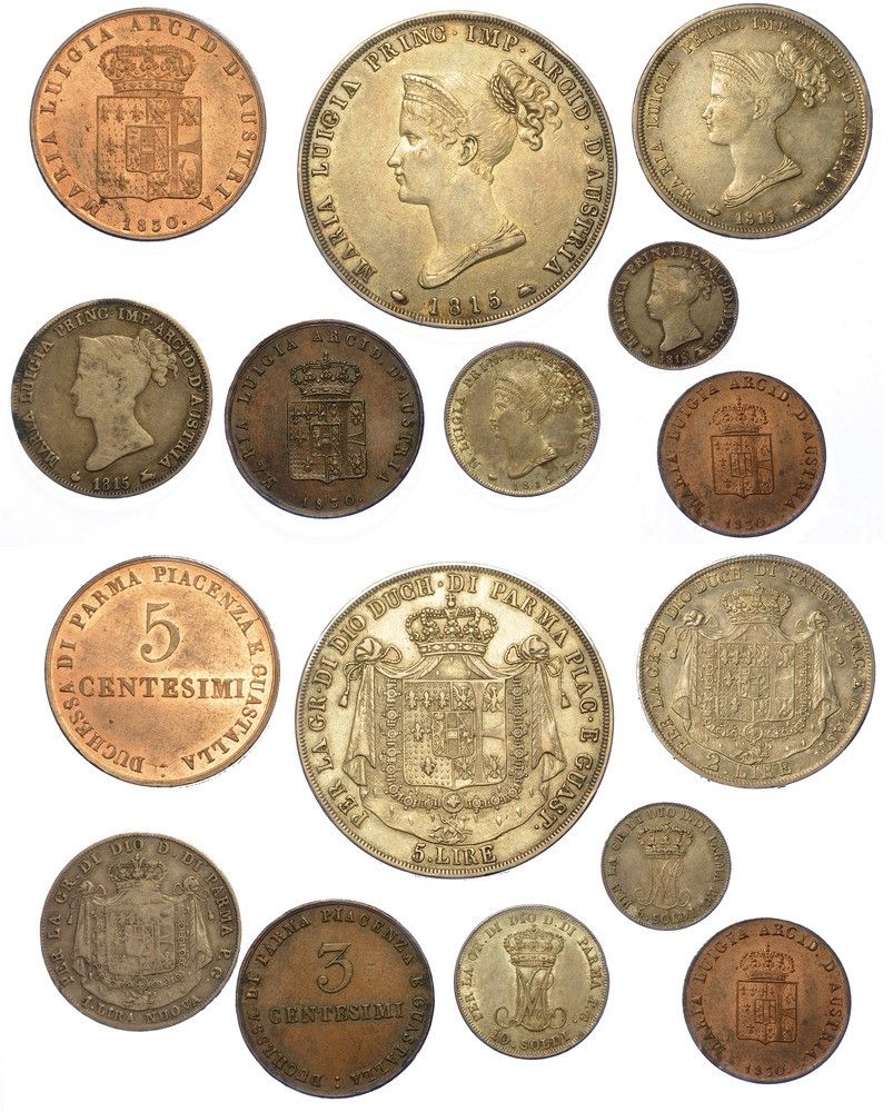 PARMA - MARIA LUIGIA D'AUSTRIA, 1815-1847. Lotto di otto monete.