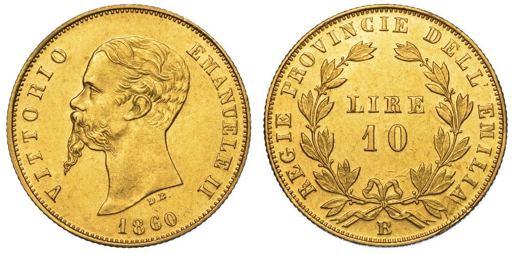 RE ELETTO. VITTORIO EMANUELE II DI SAVOIA, 1859-1861. 10 Lire 1860. Bologna.