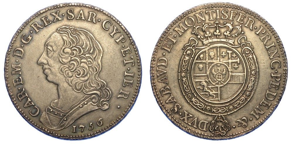 REGNO DI SARDEGNA. CARLO EMANUELE III DI SAVOIA, 1755-1773. Mezzo Scudo Nuovo 1756. [..]