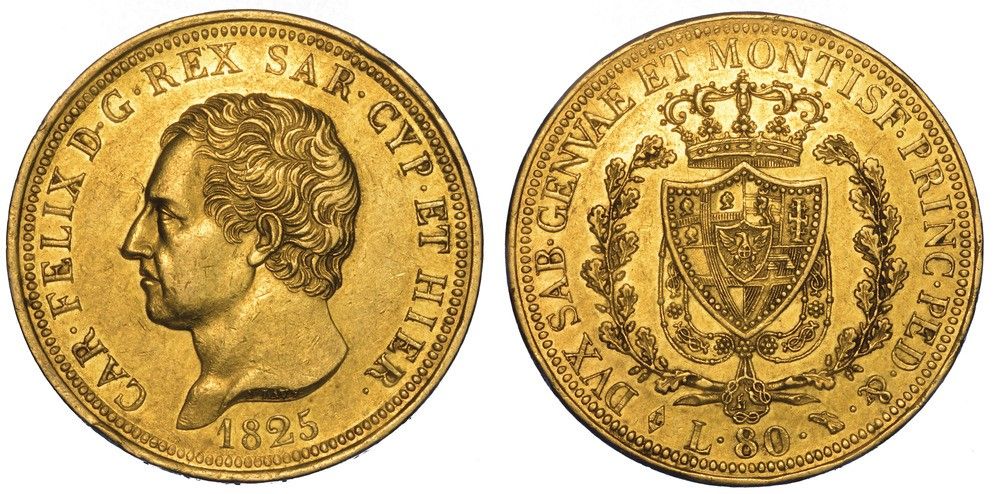 REGNO DI SARDEGNA. CARLO FELICE DI SAVOIA, 1821-1831. 80 Lire 1825. Torino.