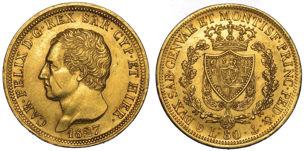 REGNO DI SARDEGNA. CARLO FELICE DI SAVOIA, 1821-1831. 80 Lire 1827. Genova.