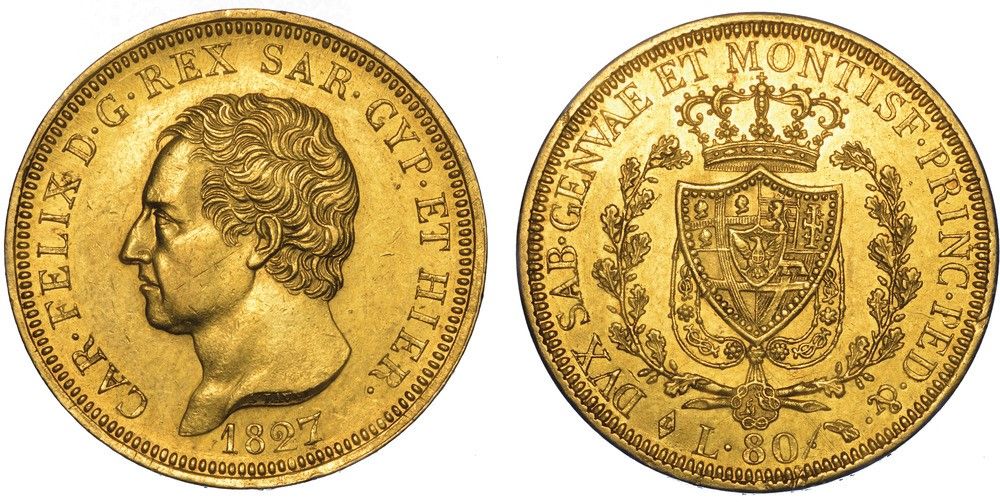 REGNO DI SARDEGNA. CARLO FELICE DI SAVOIA, 1821-1831. 80 Lire 1827. Torino.