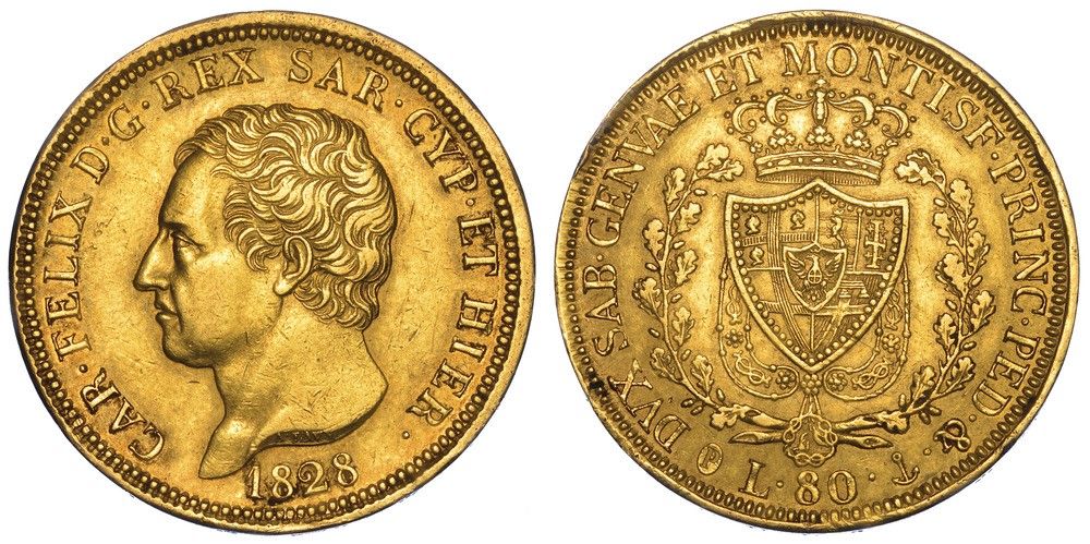 REGNO DI SARDEGNA. CARLO FELICE DI SAVOIA, 1821-1831. 80 Lire 1828. Genova.