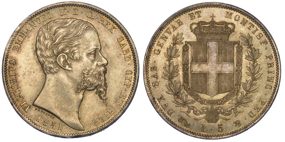 REGNO DI SARDEGNA. VITTORIO EMANUELE II DI SAVOIA, 1849-1861. 5 Lire 1851. Genov [..]