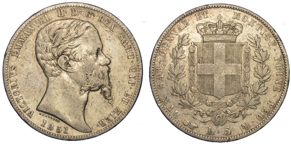 REGNO DI SARDEGNA. VITTORIO EMANUELE II DI SAVOIA, 1849-1861. 5 Lire 1851. Torin [..]