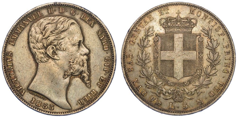 REGNO DI SARDEGNA. VITTORIO EMANUELE II DI SAVOIA, 1849-1861. 5 Lire 1853. Genov [..]